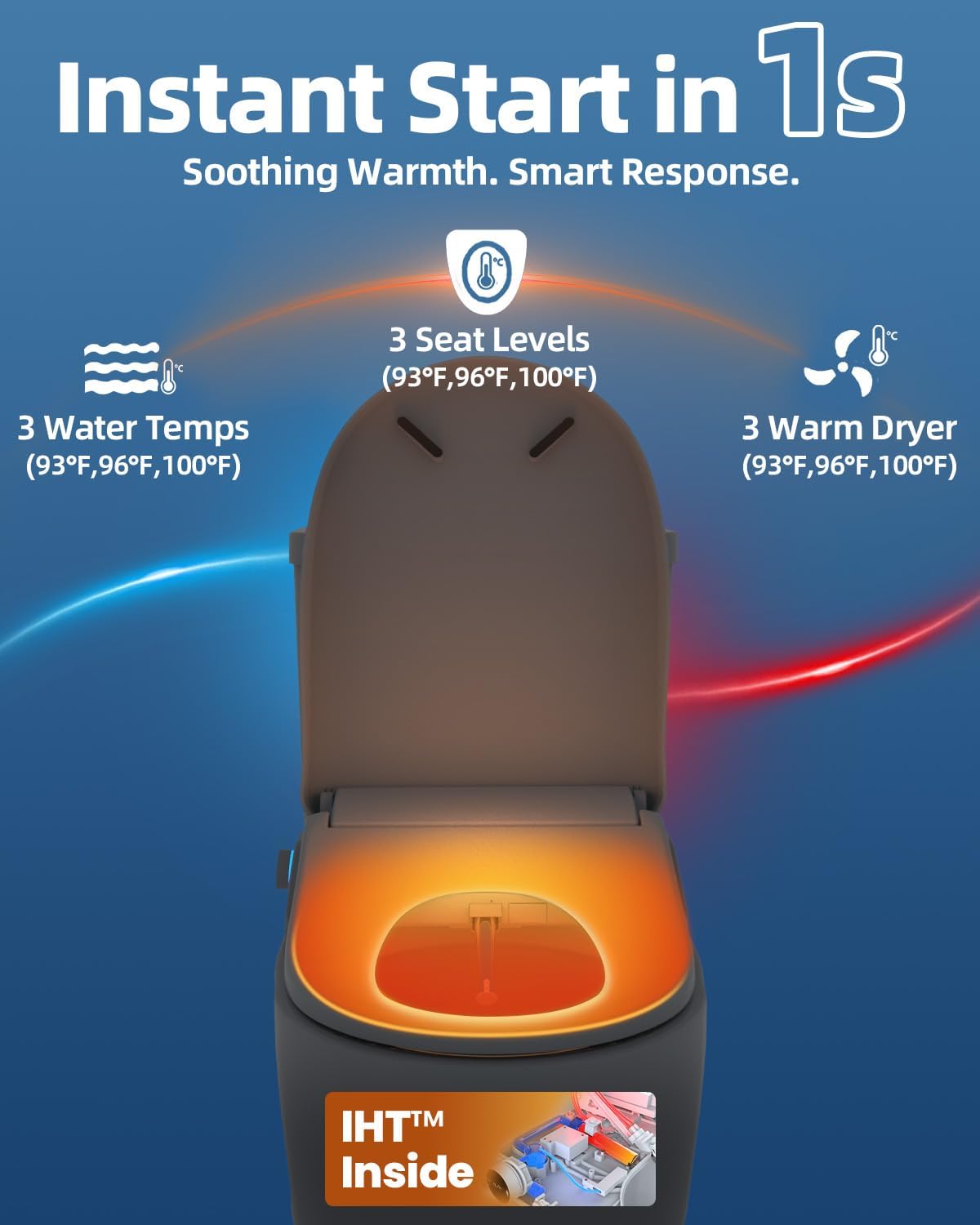 • Instant warm water and adjustable drying eliminate the need for toilet paper, making it eco-friendly.