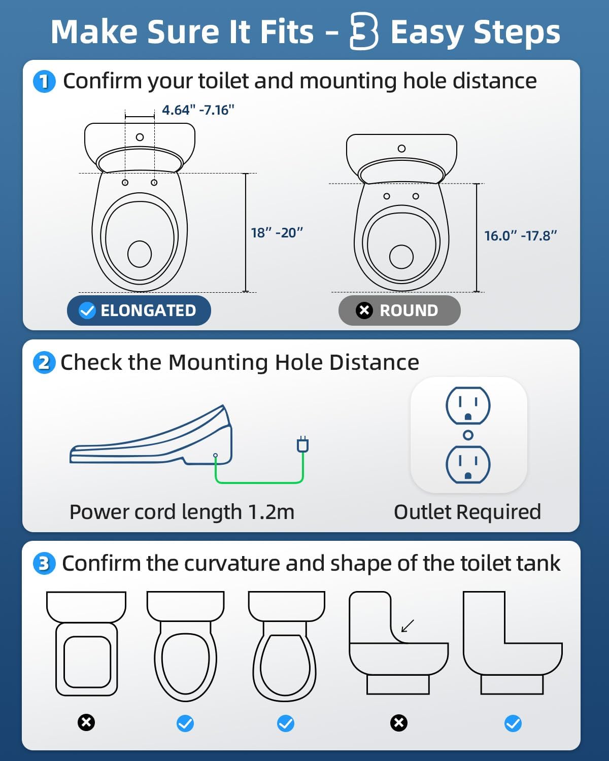 It’s designed for elongated toilets. Round models may not be compatible.